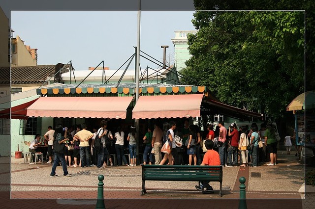 關於大利來記的食記,獨立出一篇來說說心得感想吧!! 呵呵 ~ 我們那天為了處理酒店住宿的事情,差點來不及到大利來記,還好時間抓的剛剛好,下了計程車大約兩點四十分左右,剛好來排隊等三點的豬扒包出爐!!
