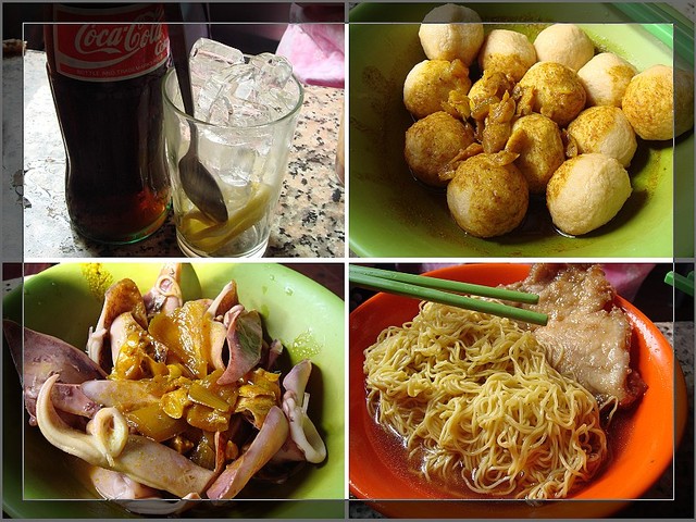 於是我們各點了一份咖哩魚丸和咖哩魷魚,豬扒麵,檸檬可樂! 先吃ㄧ口排隊來的豬扒包,外面的麵包真的不錯,咬下去有彈性,在口中嚼來非常有口感!豬扒的感覺比較硬一點,總和三家(香港蘭芳園,金馬倫茶餐廳,大利來記)吃來,蘭芳園的豬扒比較嫩,澳門這兩家口感比較扎實,各有優點啦!咖哩魷魚,我吃起來覺得好辣喔!不過魷魚好新鮮,吃起來脆脆的,口感不錯,魚丸也不錯,呵呵...比台灣仿的氹仔豬扒包店的好吃多了...強烈推薦咖哩魷魚喔!!