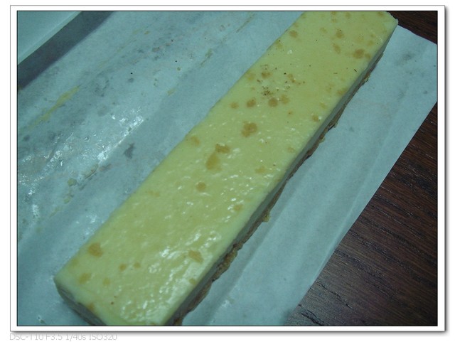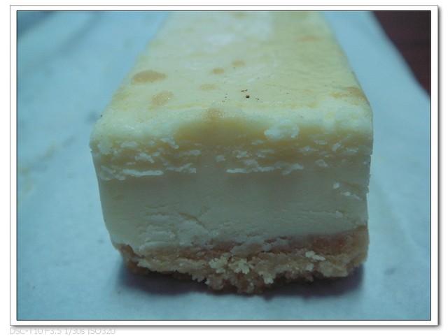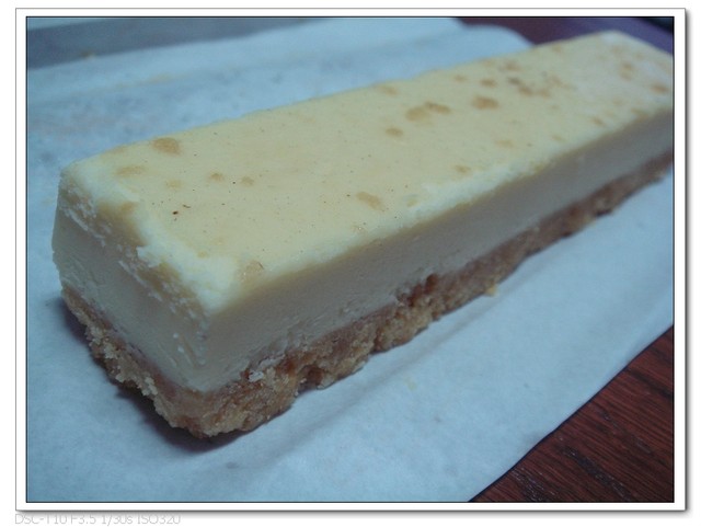 起士條的寬度剛好一口大小,一口一口的送進嘴巴,好濃郁的感覺,冰冰涼涼的起士蛋糕體,融化在嘴裏,好吃耶...