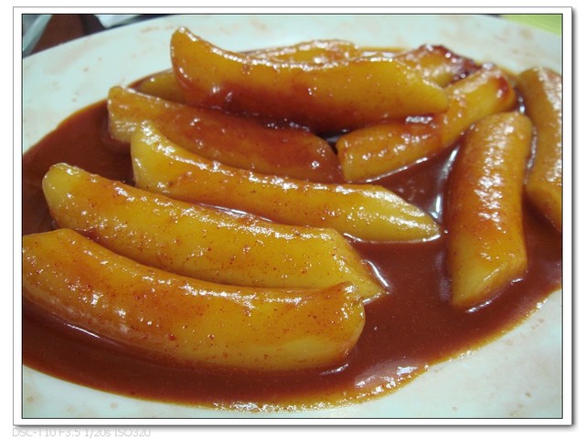 先送來的是辣炒年糕,一盤裡面只有十根年糕,感覺少了點,不過味道還不錯,年糕很Q,但是比我在韓國吃的辣!