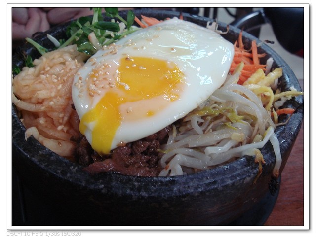 最後上來的是石鍋拌飯,裡頭的料都快滿出來了,還在上面加了顆荷包蛋,看起來真是豐盛,趕緊將所有的料拌勻,原本翠綠的蔬菜混著熱騰騰的飯,好好吃喔!很推薦來吃吃看喔!