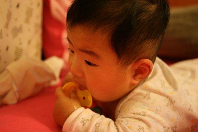 最近睡前居然都會歡一下哭一下叫一下,只要把他抱起來就停止了,我想...這聰明的孩子演戲演的真好,知道要人抱抱就要哭大聲一點才行,要戒掉這習慣才行!