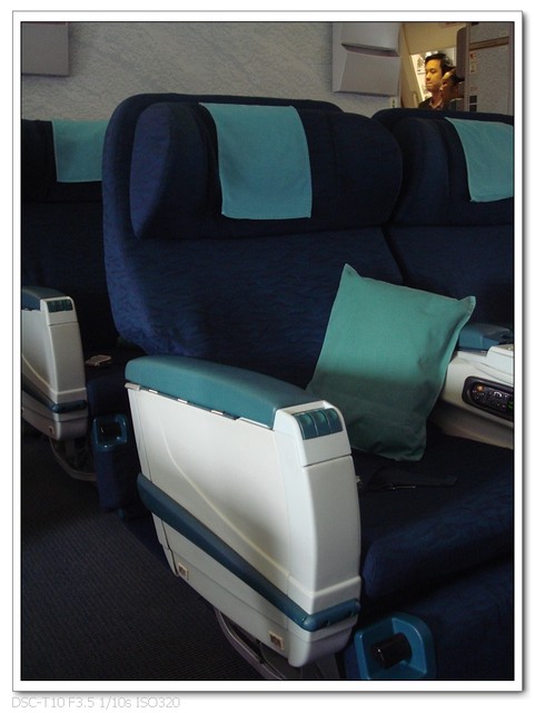 第二段航程是香港飛吉隆坡CX725 12:50起飛,訂位時,網路顯示機型還是由空中巴士330來擔任,而且還是國泰較新內艙,人稱魚骨的全躺室座椅,不過前一天預辦登機,機型就改為波音777-200擔任,登機後感覺還是蠻舊的機型,螢幕小,耳機陽春,感覺跟遠程航線差好多喔!人家還蠻期待魚骨的耶!沒搭過的很新鮮嘛!