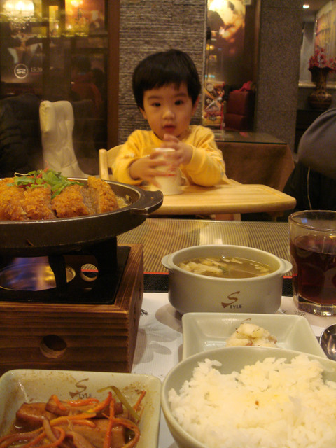 坐上餐椅後,不停的扭動,先是打翻了水(似乎最近都會上演這齣戲),之後一直回頭看其他桌的小孩,只有在餵他吃餅乾和飯的時候可以安靜下來,大大...你甚麼時候可以乖乖的吃飯呢?