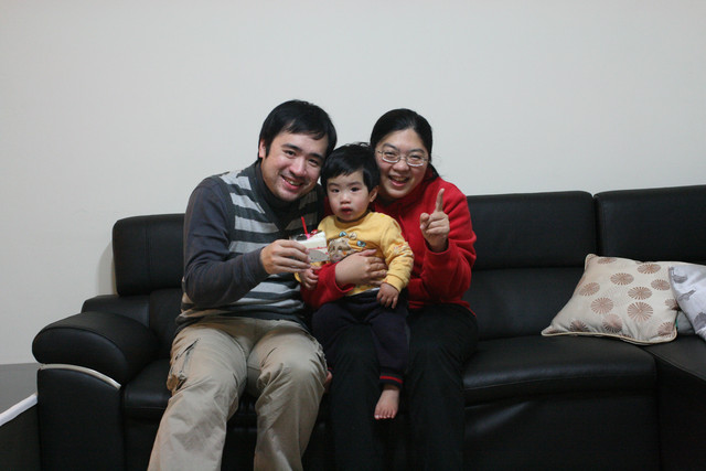 回到家裡,想拍個全家福紀念一下,結果好動的他,先是跌倒撞到頭,沒哭,之後則是直接咬得上嘴唇,流了不少的血,可是這孩子哭兩聲,又精神飽滿到處跑,我們只好在後面追他要幫他止血擦拭,小朋友的復原能力真的很強...