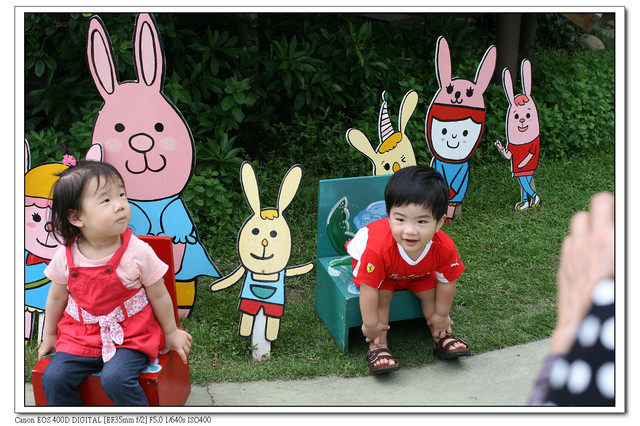 四人的合照真的很難,尤其大大很難控制靜靜的坐好,一下子跟姐姐搶玩偶,一下子站起來碰相機,換了位子還要弄一下姊姊,哼~就因為他是男生嗎?