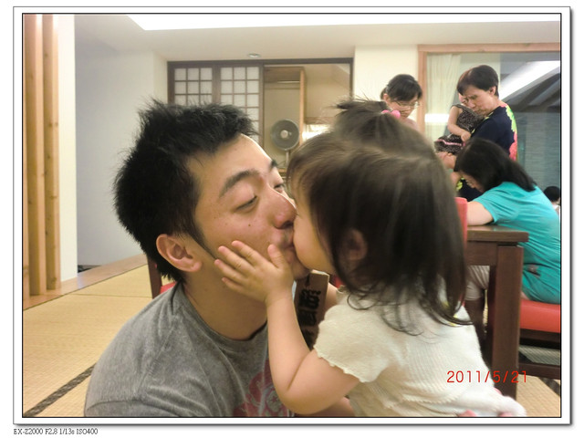 在民宿的時候,James叔叔送了一個髮圈給小蜜桃,結果小蜜桃回報的卻是他的吻,哇! 叔叔,你賺到了!! 多久沒人給你這麼真誠的吻了呀!還捧著你的臉耶!