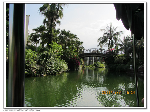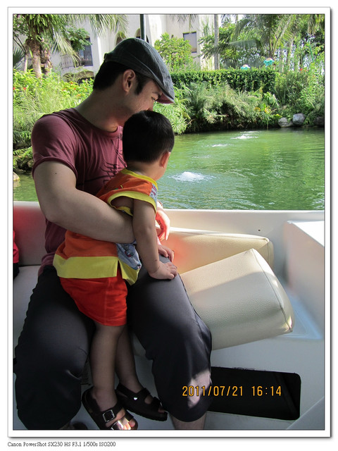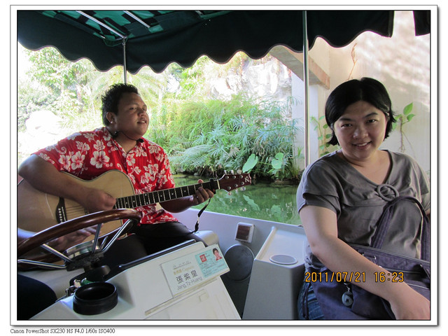 理想大地整個園區建築物是環繞著應許河建造的,理所當然的我們先乘坐遊艇去看看這條運河囉! 整趟遊船大約十到十五分鐘左右,下午的時段剛好有吉他手唱歌,在船上一邊欣賞風景,一邊聽著輕快的音樂,好享受喔!!