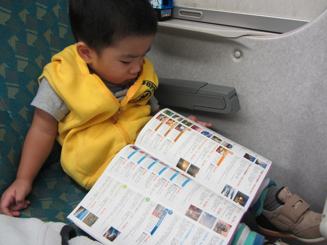 看他一個人坐在高鐵椅子上看書的模樣,頓時間感覺他長大好多喔!! 驚~~
