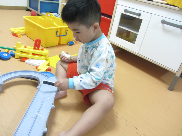有時候是汽車,媽咪陪玩,就盡量玩不用大腦的事情吧!! 將TOMICA的高速公路跑道拿出來,幾台小汽車就會讓他玩好久,一下子停車,一下子讓車子爬坡,一下子過ETC,呵...大大都有一套劇本!!
