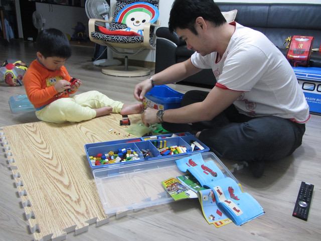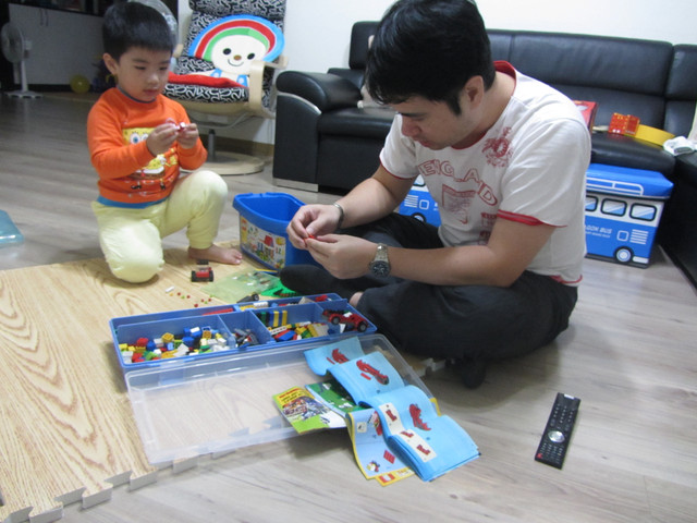 大大每天大約是七點半左右會從保母家回到家裡,從此時到九點半就我們家的親子時間,也算是陪玩時間啦!每天玩的東西都不一樣,大部分是看陪玩的是誰,但是有時候大大也蠻有自己的主見,會堅持要玩甚麼喔!!