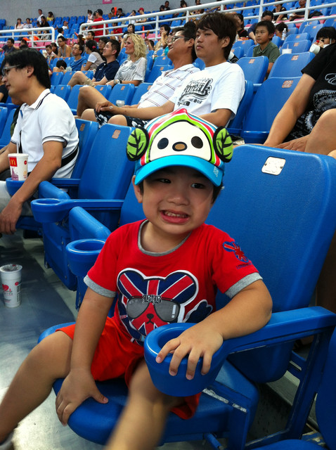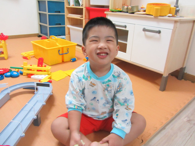 從大大兩歲以後,聽得到大人們的語言後,每次要拍照總叫他看鏡頭笑,但是他的笑臉似乎很僵硬,或者是硬撐出來的,嘴巴張開像似要把牙齒都露出來,我們都笑稱這是他的招牌笑容-假笑!