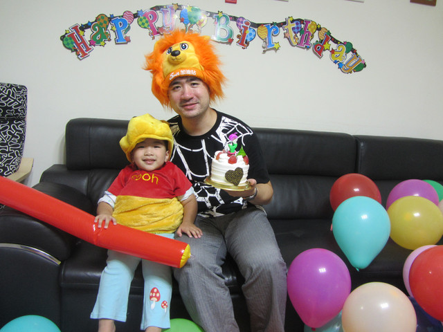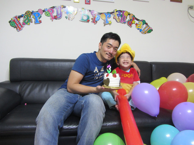 從十月開始的慶生會,終於,今天是真正的大大生日,爸比準備了氣球派對要來迎接大大...呵,累的是大人喔!
