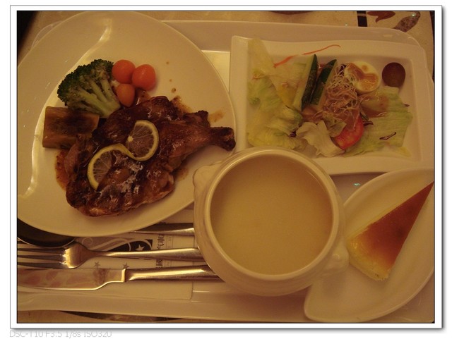 我們並不餓,所以點了一份烤嫩雞當場吃,另一份牛小排則外帶,外帶還用餐盒包裝的好好的,真是貼心...以餐點而言,算是中等的,並沒有特別好吃,不過份量十足倒是真的!