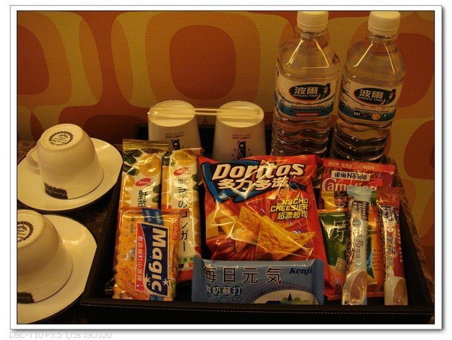 再來看備品的部份,浴室裡的盥洗用品樣樣都有,而且還用男生跟女生兩個不同紙盒裝起來喔!零食方面還好,並不是非常熱鬧型的,可能因為有餐點了,並沒有泡麵,不過點心吧下面的冰箱很特別喔!好像藏酒箱喔!