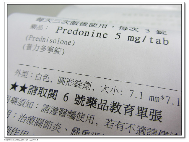 差不多等了一個小時,終於輪到我了,診間裡頭超小,醫生還詳細的把整個過程問過一次,還做了記錄,然後告訴我,應該不會是蜂窩性組織炎,因為時間間隔太久了,而且如果是蜂窩性組織炎,細菌居然會兩邊都有,這機率也太小,然後我的皮膚組織反應時間應該會很快,而不會讓我拖了至少一個月了!聽到這裡似乎心安不少,但是他又說,不知道病原,就只能壓制,最有效的壓制方式就只有吃類固醇...