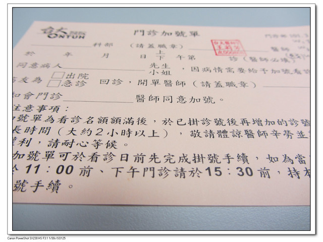拿了藥,還有下次的預約門診單,好心的醫生說,如果途中有甚麼變化,可以以加診單來掛號,嗯 希望不要用到!!