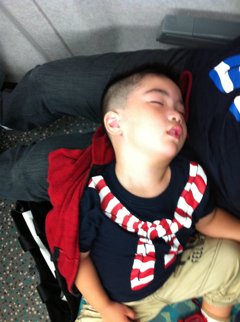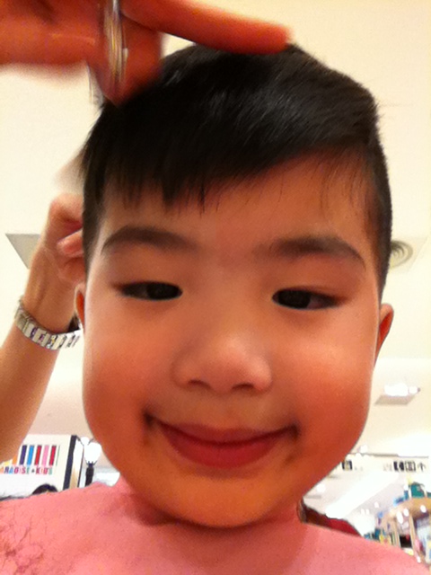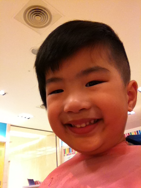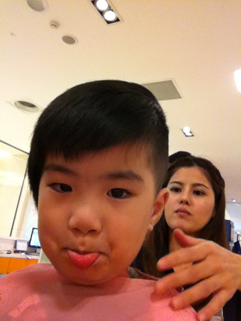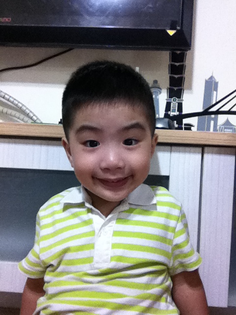 大家吃飽了之後,大大喝起媽咪點的水果茶,坐在外公外婆中間呵呵大笑(他一定想說,終於脫離爸比魔掌了!)